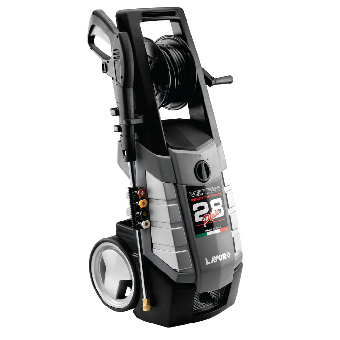 Gruppo pompa assiale, testata in ottone a tre pistoni in acciaio ad alta resistenza con valvola by-pass incorporata. Carrello con manico ergonomico e vano porta accessori. AUTOMATIC STOP SYSTEM, che consente l’attivazione o stop totale della macchina azionando la leva della pistola. Aspirazione detergente diretta con serbatoio incorporato. Avvolgitubo Doppia lancia in dotazione. Pistola con attacco rapido.