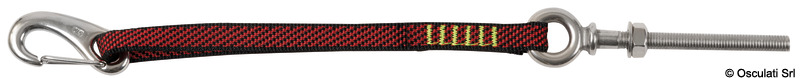 Formato da Golfare o Pad-Eye + cinghia ad alta resistenza + moschettone.Realizzato in nastro in quanto totalmente inossidabile, non riga, non sbatte sulla coperta.Cuciture in nastro riflettente per visibilità notturna.Da applicare vicino al verricello come ritenuta di sicurezza contro la caduta dell’ancora in navigazione.