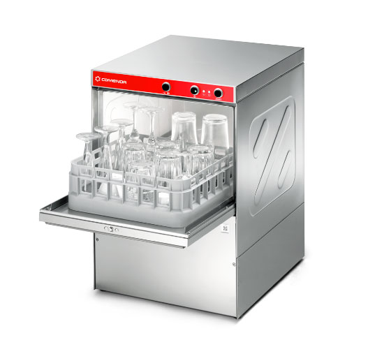 Struttura portante, pannelli laterali e frontali, vasca, filtro vasca, bracci e ugelli di lavaggio e risciacquo in acciaio inox AISI 304. Porta a doppia parete controbilanciata. Altezza bocca di carico di 290 mm. Vasca stampata...