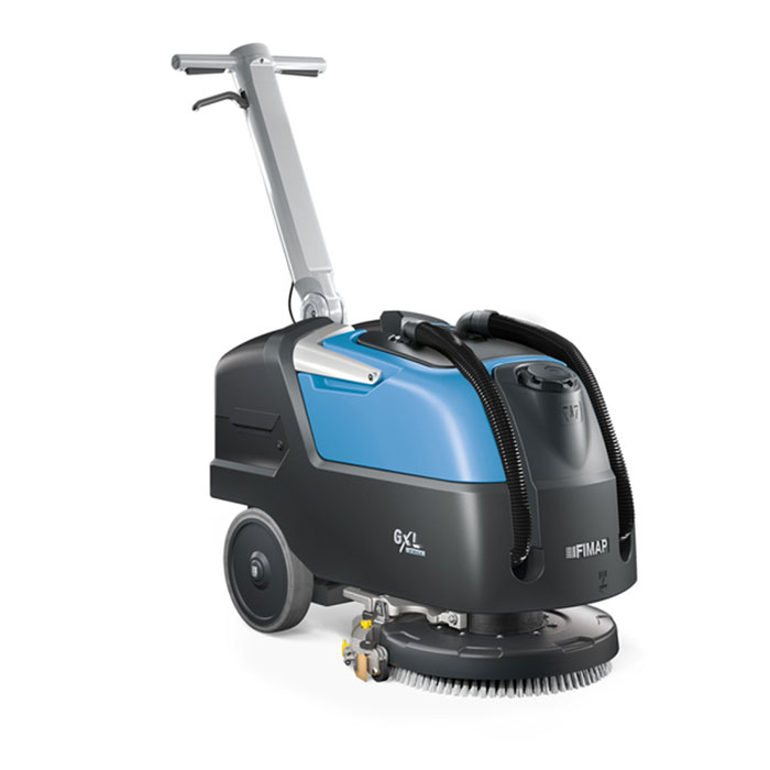 Completa di pannello di controllo con comandi soft-touch, Eco Mode, contaore, indicatore livello soluzione, aspirazione silenziosa, regolazione soluzione detergente, telaio tergipavimento e attacco tergipavimento in alluminio, FES (Fimap Energy Saver), aggancio/sgancio spazzola automatico, Start&Stop, batterie al litio, caricabatteria, spazzola, Produttività teorica (fino a 1.200 m²/h) Larghezza lavoro (430 mm) Pressione sulla spazzola (40 kg) Serbatoio soluzione 25lt Serbatoio recupero 27lt - Autonomia batterie (fino a 3 h)
