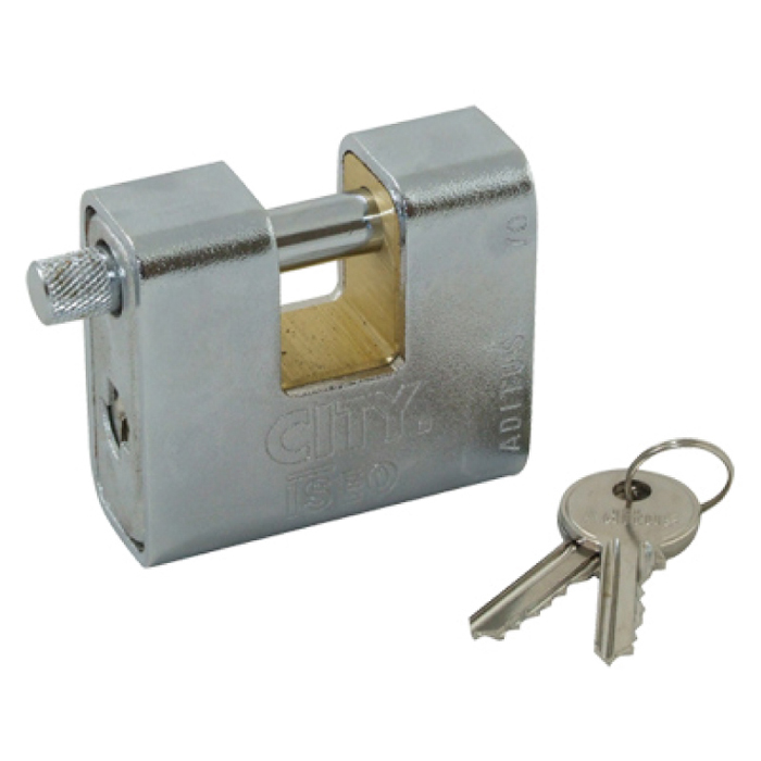 Lucchetto corazzato in ottone e acciaio cromato. Chiusura a pistone. Dimensione 60 mm.