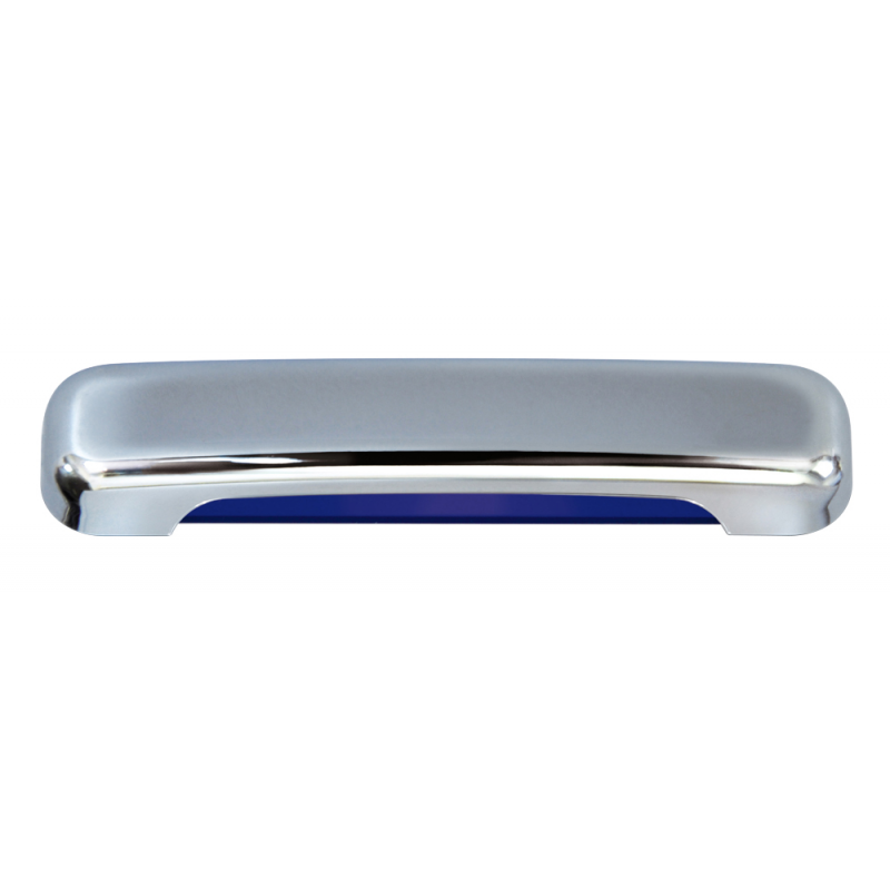 Luce di cortesia stagna IP 65 a 4 led, fabbricata in acciaio inox AISI 316 con finitura lucida, dotata di diffusore che proietta lilluminazione verso il basso. Luce bianca naturale o blu. Fissaggio con viti.Sensibile alla polarità.