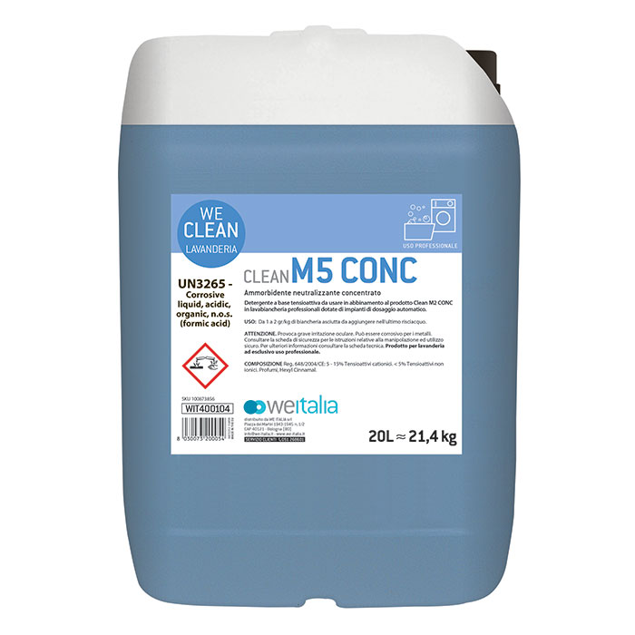 AMMORBIDENTE/NEUTRALIZZANTE - LT 20 = 26,6 KG. Concentrato con azione ammorbidente ed antistatica, conferisce ai tessuti una elevata morbidezza e la giusta consistenza. La presenza di acido formico garantisce la neutralizzazione dei residui di alcalinita riportando il capo ad un corretto pH 5,5-6,5 Ideale per tutti i tipi di fibra sia naturale che sintetica. Rende facile la stiratura di tutta la biancheria, in particolare di quella piana al mangano e lascia sui tessuti una gradevole profumazione. Produzione Diversey x We Italia.