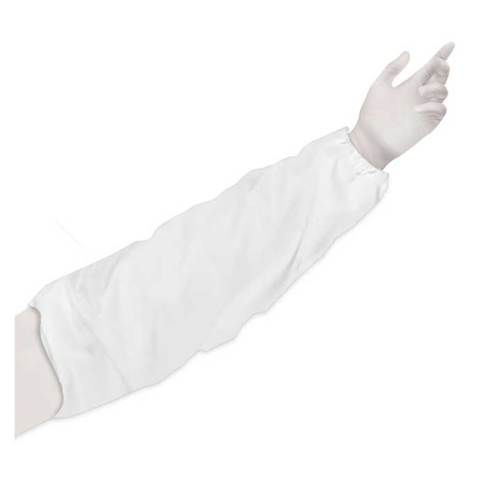 Manicotto in TNT bianco con elastico alle estremità, per la massima igiene e protezione; cm 40x20. Articolo 70098A. Confezione busta da 100 pz. Prezzo e Cartone da 20 buste da 100pz, tot. 2.000 pz..