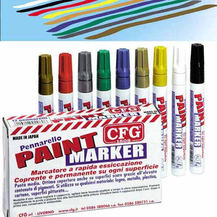 Marcatore a rapida essiccazione coprente e permanente su ogni superficie. Disponibile anche nei colori Giallo, Rosso, Verde, Bianco e Blu.