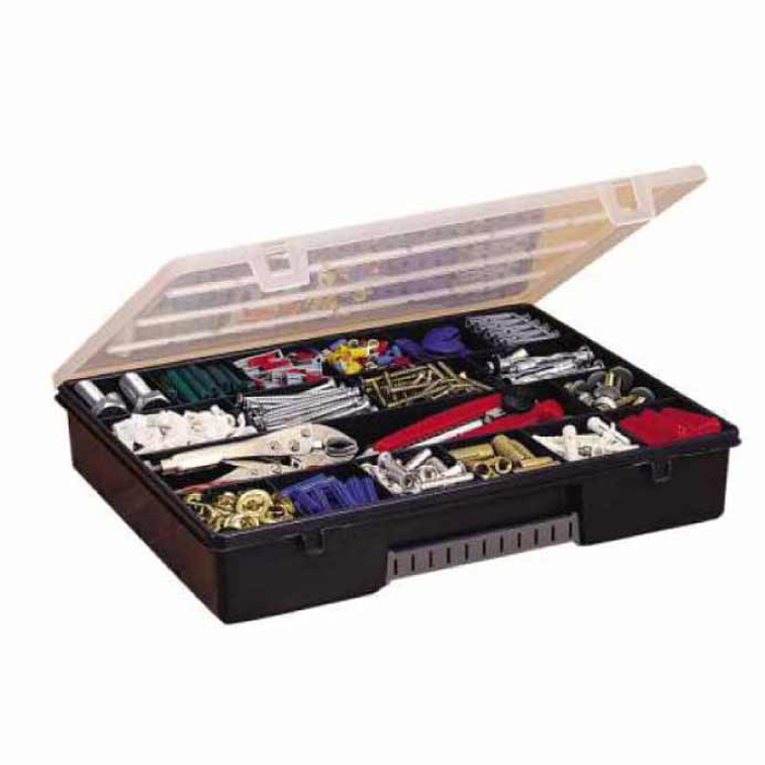 Coperchio trasparente a chiusura ermetica - nessun rischio di mischiare il contenuto. Maniglia in gomma. Doppia chiusura Dimensioni 36,5 x 6,4 x 29,1 cm.