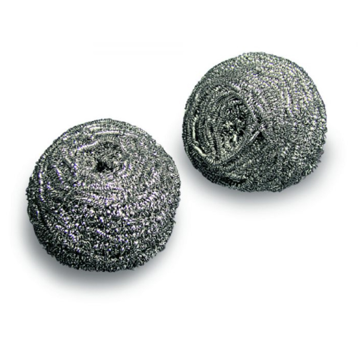Spirale in filo arrotondato in acciaio inox AISI, non graffia le superfici, non trattiene grassi e residui, non arruginisce.