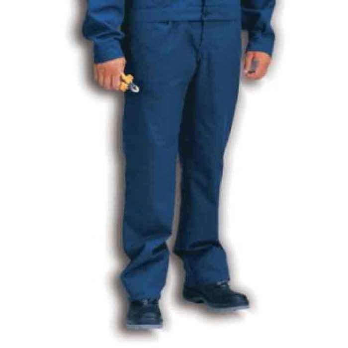 Pantalone 100% cotone massaua 250 gr/mq ca. Apertura sul davanti chiusa con bottoni ricoperti da patta, passanti in vita, due tasche esterne con apertura laterale sui fianchi, una tasca posteriore con bottone, un taschino portametro...