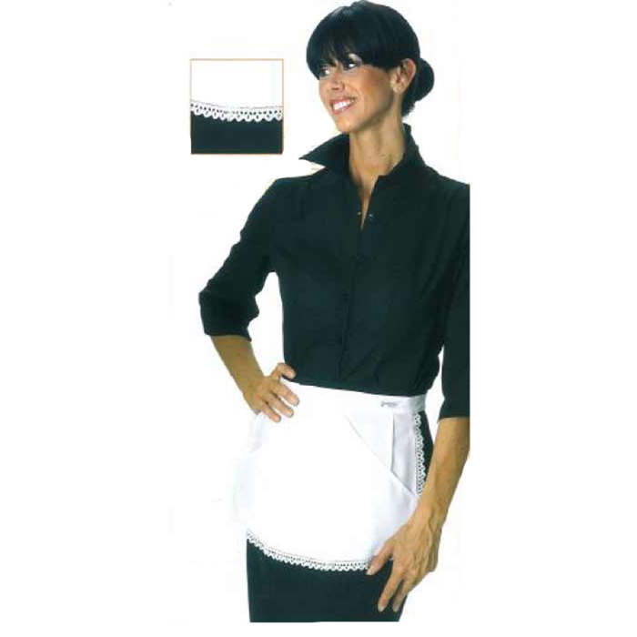 Grembiulino con tasche 100% poliestere 200 gr/mq. Antimacchia ingualcibile. Taglia unica H cm 43 x L cm 86.