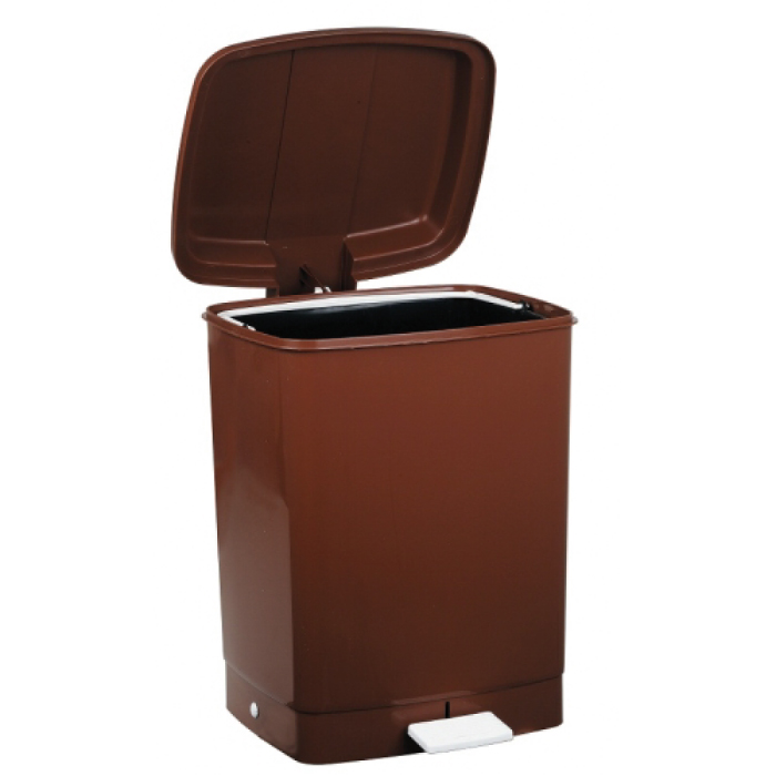 Pattumiera rettangolare in plastica con coperchio apribile a pedale e secchio interno con manico. Capacità 20 lt.