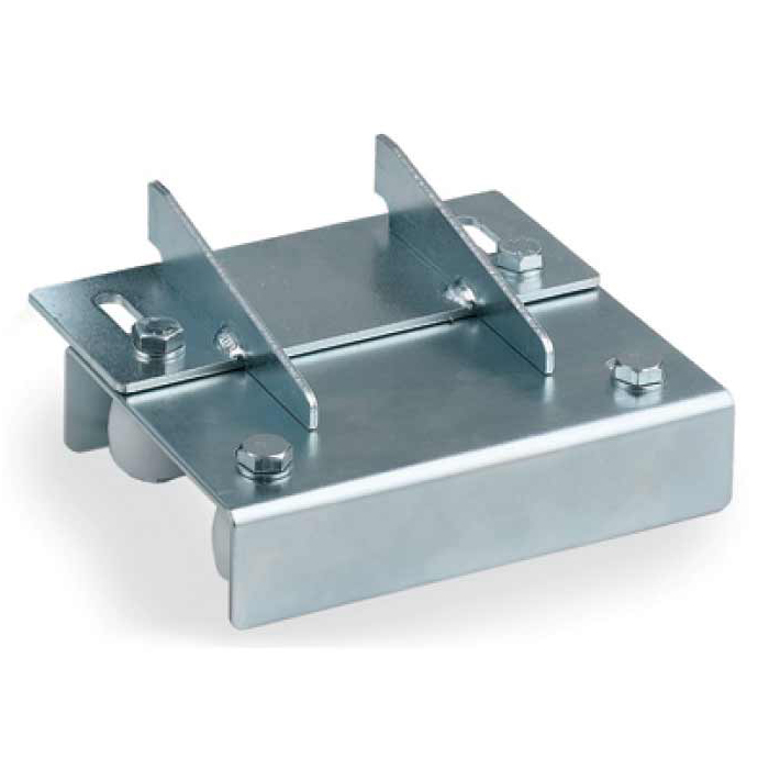 Piastra zincata di guida regolabile con 4 rulli in nylon per tubolari da 40 - 50 e 60 mm. Consentono di registrare facilmente la distanza fra colonna e portone dopo essere srate applicate. Art. 167 apertura 135 : 170 mm. Piastra 200 x 45 mm. Regolazione 40 : 50 mm.
