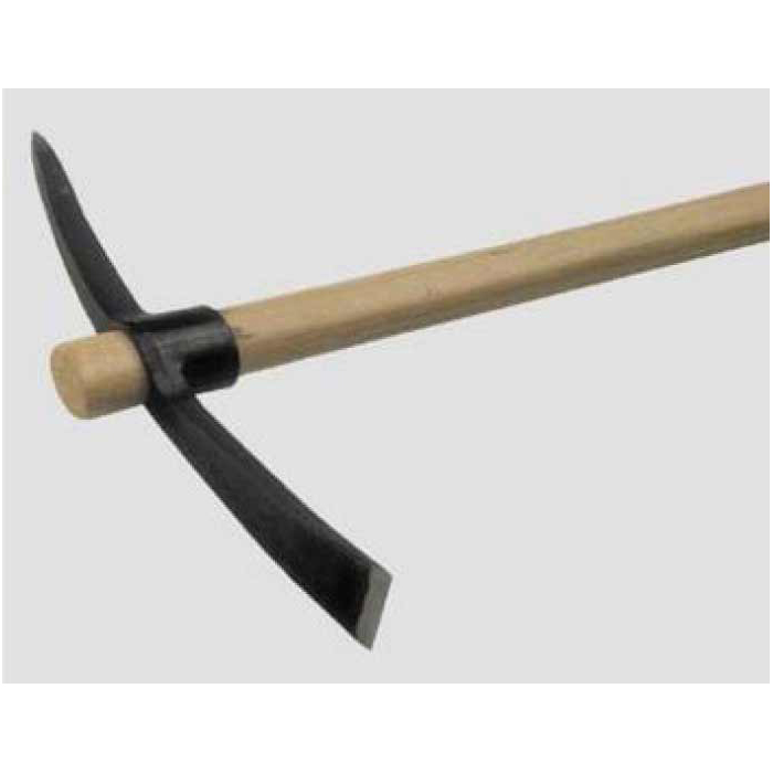 Piccone in acciaio forgiato completo di manico. Peso 1500 gr. Punta, penna lunghezza 480 x larghezza 6 mm.