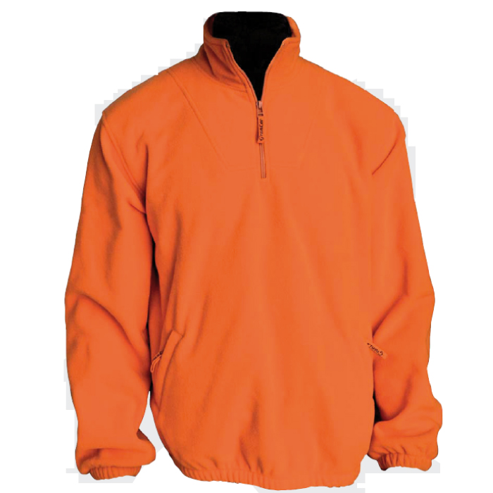 Pile antipilling mezza zip , collo con cerniera. Indumento di semplice progettazione interamente confezionato in Tessuto 100% poliestere. Polsini e girovita con elastico. Colori blu e arancio. Peso 280 gr/ma/ca. Taglie : S - M - L - XL - XXL