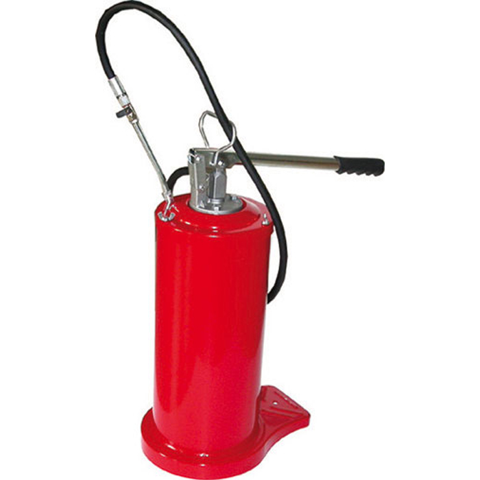 Pompa per grasso a barile da 12 kg completa di tubo flessibile 1/4? R1T lungh. 1,5 mt, rubinetto e tubetto rigido con testina a 4 griffe. Pressione massima 250 bar