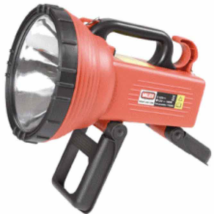 Proiettore alogeno 3 milioni di candele. Maniglia e impugnatura supplementare per uso portatile - Lampada 12V-55W - Fascio luminoso ad altissima intensit? - Batteria ricaricabile - Caricabatteria per ricarica da rete - Adattatore 12V per ricarica da accendisigari auto.