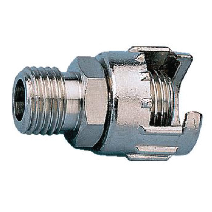 Raccordo cannellato rapido di collegamento "Express" in ottone con guarnizione in NBR. Applicazioni: impianti aria compressa in cave, miniere, costruzioni edilizie. Distanza delle griffe 39 mm. Max pressione di lavoro 20 bar. Temperatura di lavoro...