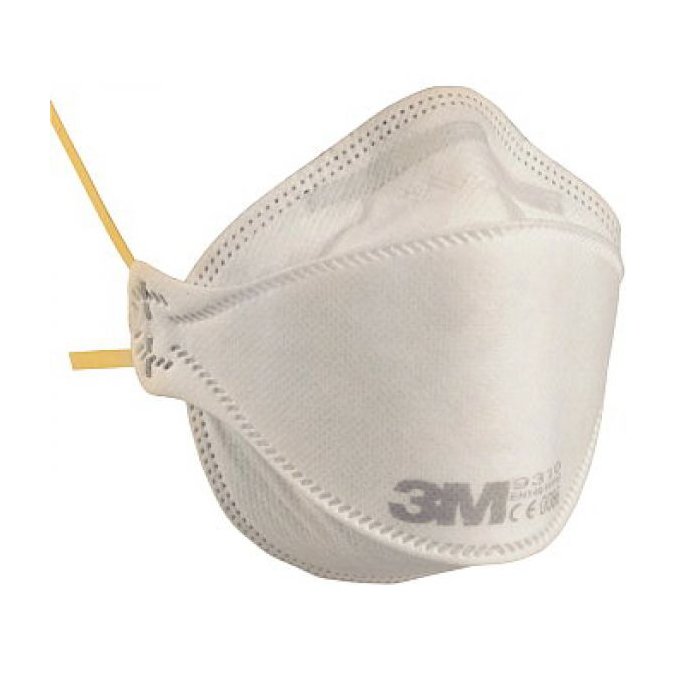 Mascherina pieghevole in TNT tessuto non tessuto. Protezione da aerosol solidi o liquidi senza tossicit? specifica in concentrazione fino a 4 x limite di esposizione. Morbida guarnizione di tenuta in corrispondenza del naso. Imballo da 12 confezioni da 20 pz.