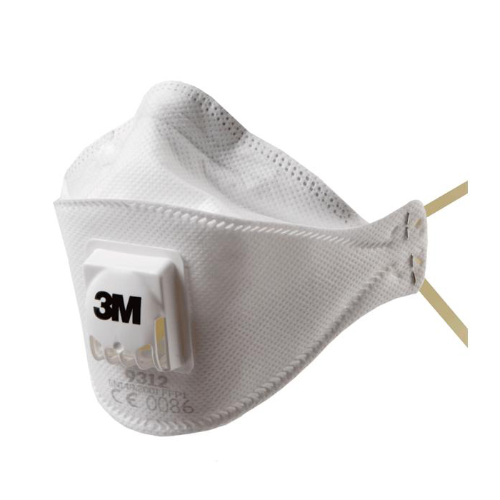 Mascherina pieghevole in TNT tessuto non tessuto. Protezione da aerosol solidi o liquidi senza tossicit? specifica in concentrazione fino a 4 x limite di esposizione. Morbida guarnizione di tenuta in corrispondenza del naso. Versione con valvola di espirazione. Imballo da 12 confezioni da 10 pz.
