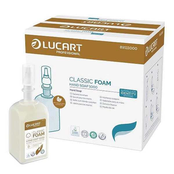 Ricarica sapone schiuma Identity. Imballo da 6. Dermatologicamente testato. Dispenser codice SL892439 bianco e SL892440 nero.