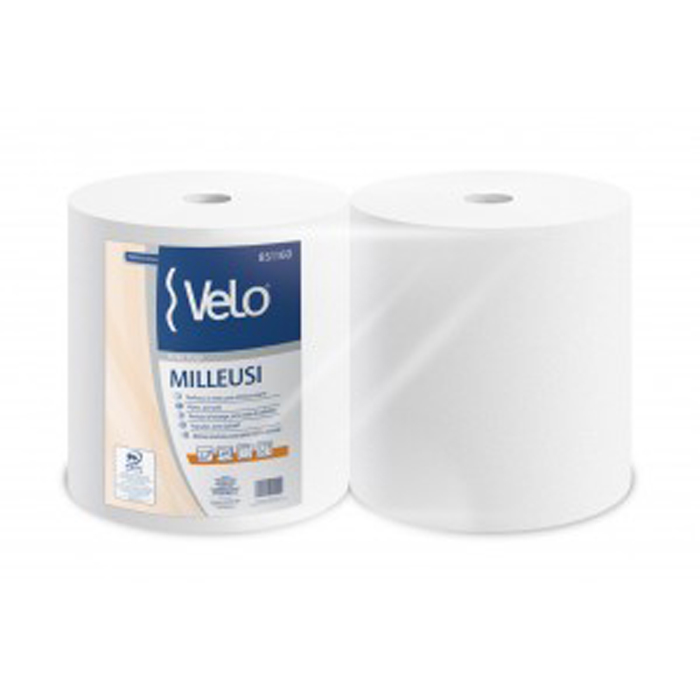 Pulitori in carta pura cellulosa 2 veli. Per alimenti. Produttore Cartiera Lucchese. Prezzo per imballo da 2 rotoloni da 800 strappi da cm 25 x 25 pari a mt 200 cad. Peso imballo da 2 rotoloni kg 3,7 ca. Pedana da 32 imballi.