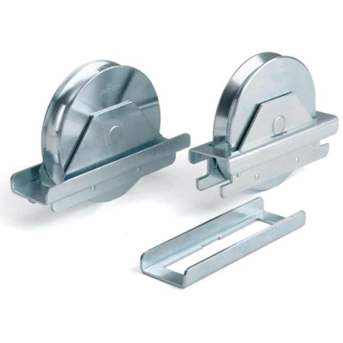 Ruote in acciaio C40 zincate con supporto a scatto. Montano cuscinetti ingrassati e schermati. La staffa ad "U" funziona come sagoma per il taglio del tubolare ed una volta fissata lo rinforza. Se applicata rovescia, la staffa consente l'applicazione della ruota su tubolari pi? larghi (60:80 mm). Art. 71 diametro 80x20 portata 300 kg. Tubolare da 40 minimo.