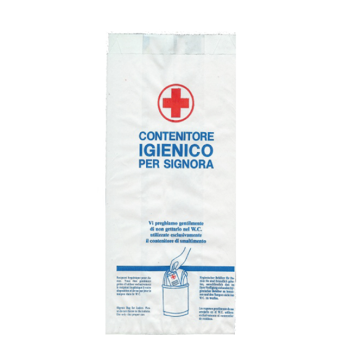 Sacchetti igienici per signore in carta bianca per contenere assorbenti igienici. Prezzo per imballo da 1.200 pz.