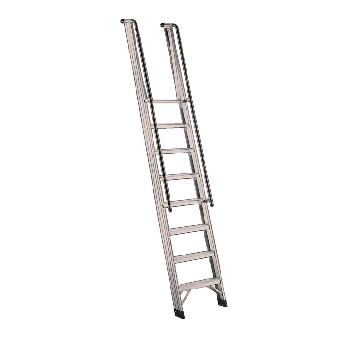Altezza mt 1,61 alla piattaforma Gradini piani antisdrucciolo cm 8 - Distanza tra i gradini cm 25 Montanti nervati e astine antiflessione sui gradini lunghi - Rinforzo schienale (a partire dalla 8 gradini) Altezza guarda...