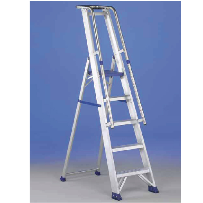 Altezza alla piattaforma mt. 1,40 - Provvista di piattaforma, pianetto portattrezzi, corrimani e guarda-corpo. Dotata di cinghie antiapertura accidentale ? ideale per utilizzo professionale. Prodotta secondo la normativa italiana vigente D.lgs 81/08 e la normativa europea UNIEN131.