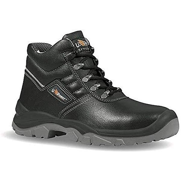 Scarpe antinfortunistiche alte, classiche e robuste u power della linea Style&Job, con tomaia in pelle stampata idrorepellente, puntale in acciaio, antiperforazione, antiscivolo, lamina in acciaio ergonomica e suola PU/PU, RS S3 SRC