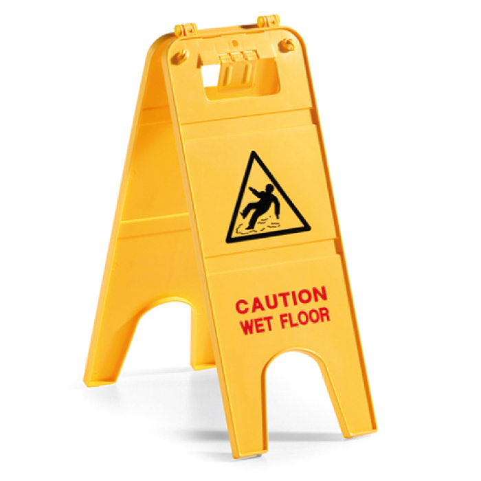 segnale in plastica di avviso pavimento bagnato a 2 ante in italiano. realizzato interamente in materiale plastico leggero e resistente agli urti. dotato di appositi agganci per applicare la catena in plastica, utile per delimitare le aree di lavoro. facilmente ripiegabile e trasportabile a mano. Agganciabile a qualsiasi carrello della gamma filmop. dimensioni lxwxh (cm) 23 x 42 x 57