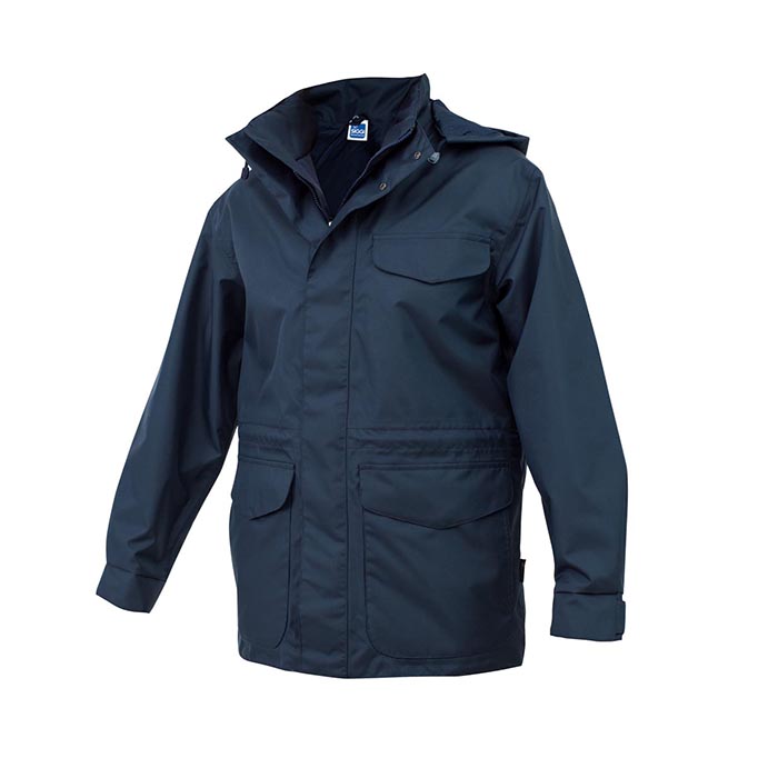 100% poliestere spalmato poliuretano - 145gr/mq - Cuciture termonastrate - Capo foderato - Abbottonatura nascosta con zip doppio cursore e bottoni a pressione - Cappuccio staccabile regolabile con coulisse - Taschino e tasche davanti chiuse con pattina e bottoni a pressione - Tasca verticale inserita sotto la lista dell’apertura davanti - Tasche laterali con interno in tessuto felpato - Tasca interna sul davanti sinistro chiusa con zip - Fondo manica regolabile con bottoni a pressione.