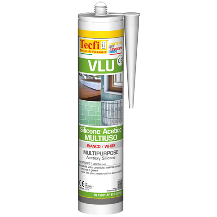 TECFI: SILICONE ACETICO MULTIUSO TRASPARENTE 280 ML Sigillante siliconico monocomponente a basso modulo, polimerizza per effetto dell’umidità formando una gomma con elevate caratteristiche di elasticità. Reticolazione acetica.