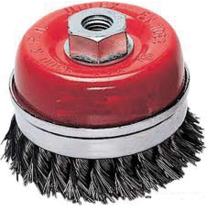 Spazzole a tazza con filo di acciaio ondulato ad alta resistenza, perfette per la preparazione alla verniciatura di superfici metalliche. Diametro 100 mm. - Attacco con dado M14 - Filo 0,3