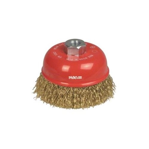 Adatte per irruvidire superfici, sbavare, disincrostare, rimozione di scorie, smalti e pulizia Rendono le superfici omogenee e lucide e sono ideali per lavorazioni in zone di difficile accesso Tipo con foro filettato M 14x2 - Con filo di acciaio ottonato ondulato Ø 0,30 mm. Diametro D mm 75 - Sporgenza filo T mm 23 - Velocità max. giri/min 12500 Adatte su smerigliatrici mm 115
