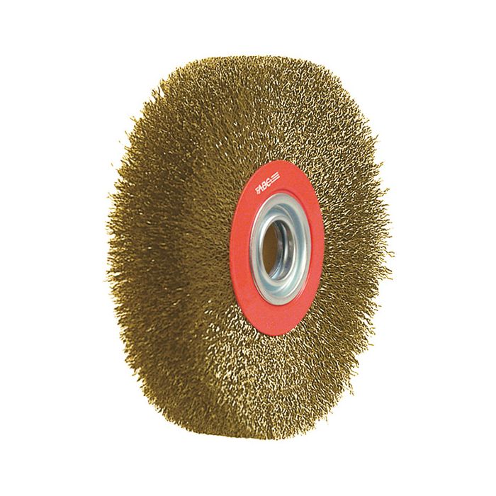 Adatte per sbavare, satinare, irruvidire, disincrostare, rimozione di scorie, smalti, ecc. Spazzole ad alta densità e con sporgenza filo T ridotta per una maggiore aggressività ed asportazione di materiale. Tipo per impiego singolo. Fornite con serie di anelli riduttori per impiego su diversi fori di attacco. Con filo di acciaio ottonato ondulato Ø 0,30 mm, ad elevata resistenza. A fascia larga.
