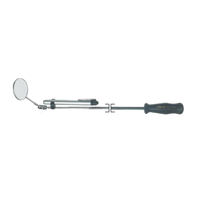 Con specchio tondo ? 55 mm e torcia a LED. Asta ovale per prevenire lo spostamento accidentale dello specchio. Torcia a LED in alluminio anodizzato con clip per agganciare alla cintura. Dimensioni torcia 140 x ? 13,5 mm. Fornito con 2 pile tipo AAA (autonomia circa 150h) . Lunghezza: chiuso 300 mm - aperto 740 mm