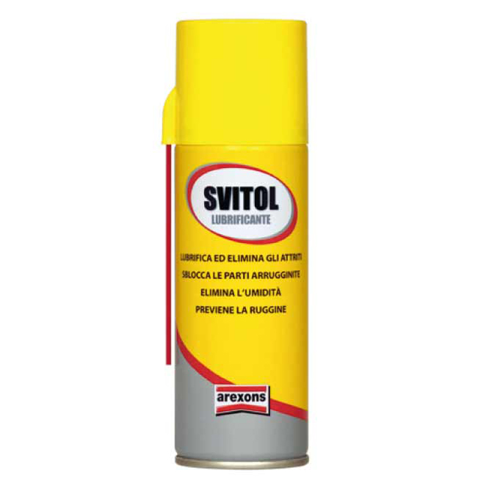 Prodotto multiuso studiato per risolvere i problemi di sbloccaggio, lubrificazione, protezione di tutte le superfici metalliche in officina, casa, auto, fai da te e durante ogni genere di lavoro, manutenzione industriale, ripristino funzionalit?, elettromeccanica, ecc. SVITOL bombola spray da 400 ml.