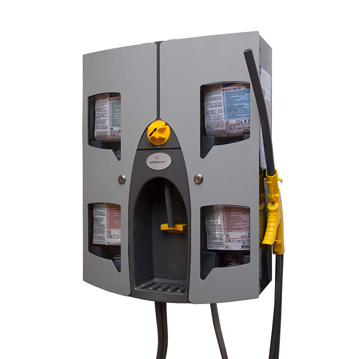 Apparecchiatura IN COMODATO per la diluizione dei prodotti superconcentrati QUATTRO SELECT DIVERSEY. E' in grado di preparare soluzioni per flaconi, secchi o serbatoi di lavasciuga gestendo diversi gradi di diluizione e diverse velocità di riempimento. Alloggia sino a 4 diversi prodotti ed è in grado di gestire 4 diversi gradi di diluizione, nessua manutenzione. Inaccessibile senza la chiave. Dimensioni 62x47x19 cm. Peso 6,7 kg.