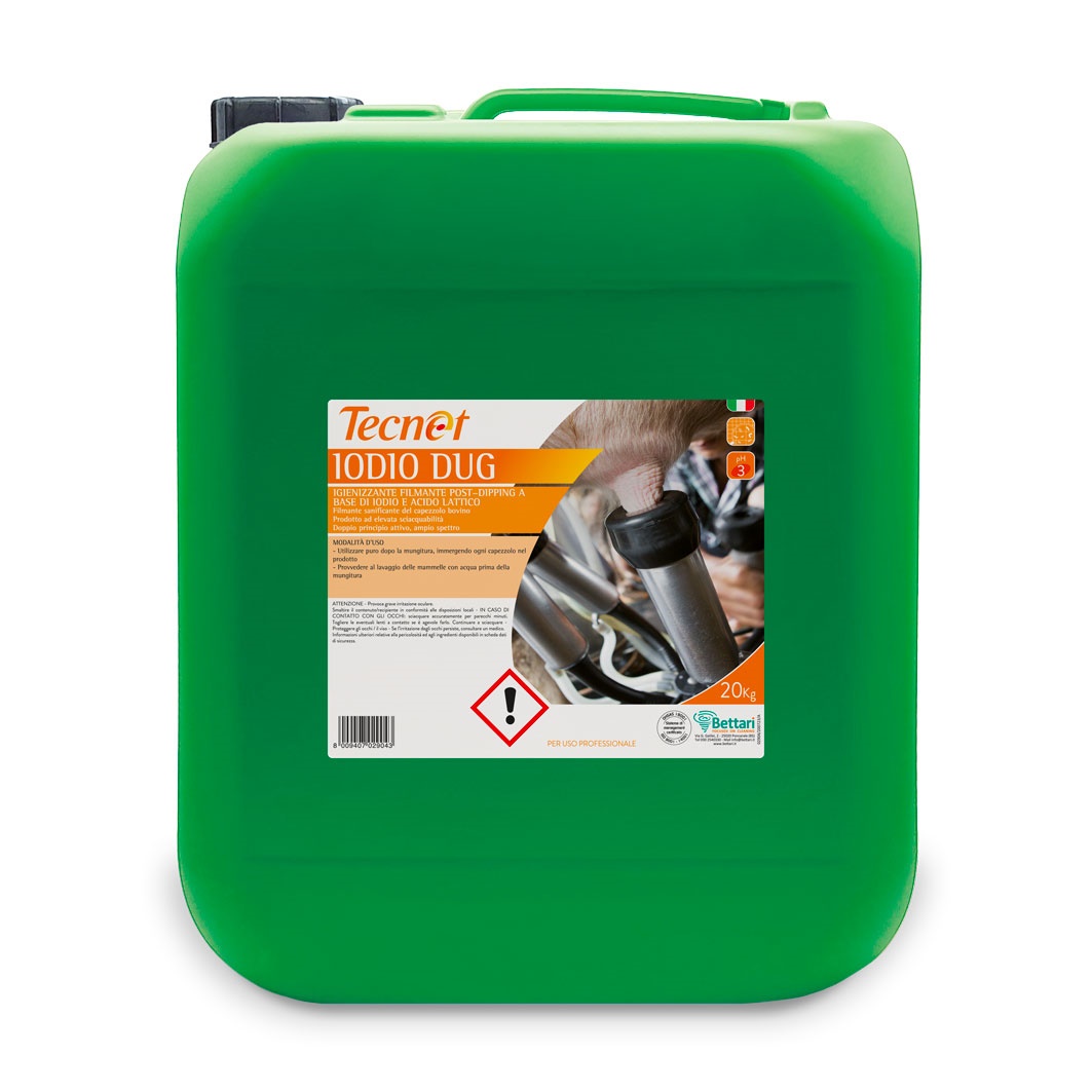 Filmante post-mungitura per il trattamento per immersione del capezzolo dei bovini da latte. Prodotto attivo contro i microrganismi per una protezione efficace da batteri GRAM+ e GRAM-, protozoi, funghi e micobatteri. Applicato regolarmente dopo la mungitura permette di mantenere la cute in eccellenti condizioni, prevenendo le fessurazioni tipiche del periodo invernale. Prodotto ad elevata viscosità, stabile a tutte le temperature; aderisce perfettamente lungo tutto il capezzolo senza gocciolare. Genera un film colorato che protegge il capezzolo dai contaminanti esterni, permettendo, inoltre, di identificare i bovini già sottoposti al trattamento.