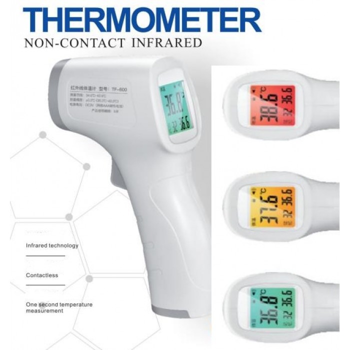 Termometro portatile ad infrarossi senza contatto per la misurazione della temperatura corporea e degli stati febbrili, utilizzabile sia su adulti che su bambini. Misurazione Senza contatto per evitare contaminazione batterica, Unità di misura C° e F° commutabile. Tempo di risposta immediato, 0,5 secondi. Display LCD retroilluminato a 3 colori in MODALITÀ corpo. Il sensore del termometro è estremamente sensibile. Qualsiasi sporco o olio impedirà una misurazione accurata. Controllare e pulire il sensore regolarmente. La superficie deve essere riflettente e brillante. Se è opaco e poco brillante, si prega di pulire il sensore con un batuffolo di cotone (preferibilmente imbevuto di alcool).