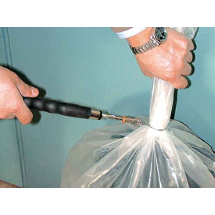 Attrezzo ideale per la chiusura rapida di qualsiasi materiale. Utilizzo particolarmente semplice: posizionato il legaccio attorno al collo del sacco e agganciato l'apposito tiralegacci ai 2 occhielli, con una sola operazione stringe ed attorciglia il legaccio sigillando il sacco.
