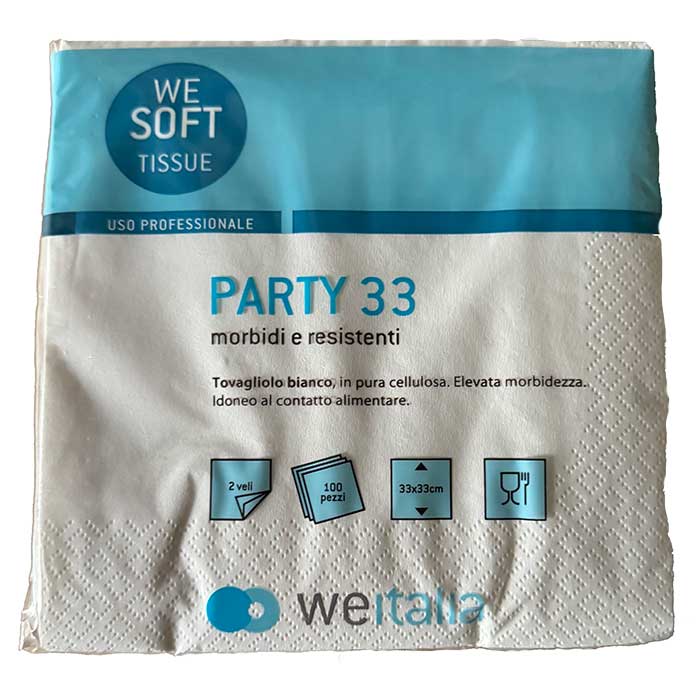 Tovagliolini 2 veli PARTY linea WEITALIA WESOFT, in pura cellulosa microgoffrata. Certificati ISO E FSC.