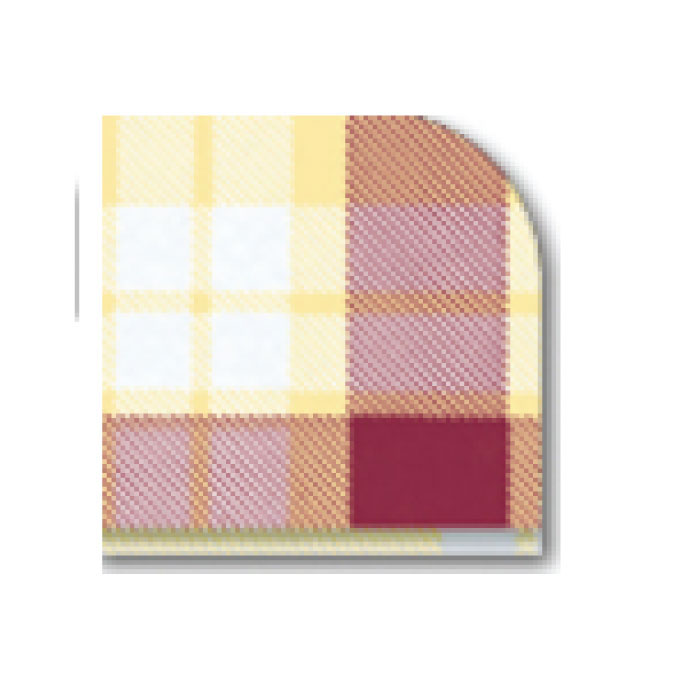Tovaglie in carta 100x100 cm. Decoro scozzese champagne bordeaux. Disponibili anche scozzese giallo-rosso - arancio-rosso - verde-blu. Imballo da 3 conf da 50 pz.