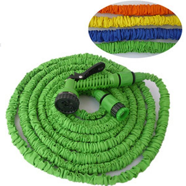 Tubo irrigazione con raccordo femmina e pistola multifunzione. Grazie alla pressione dell? acqua si estende fino a tre volte la lunghezza originale.