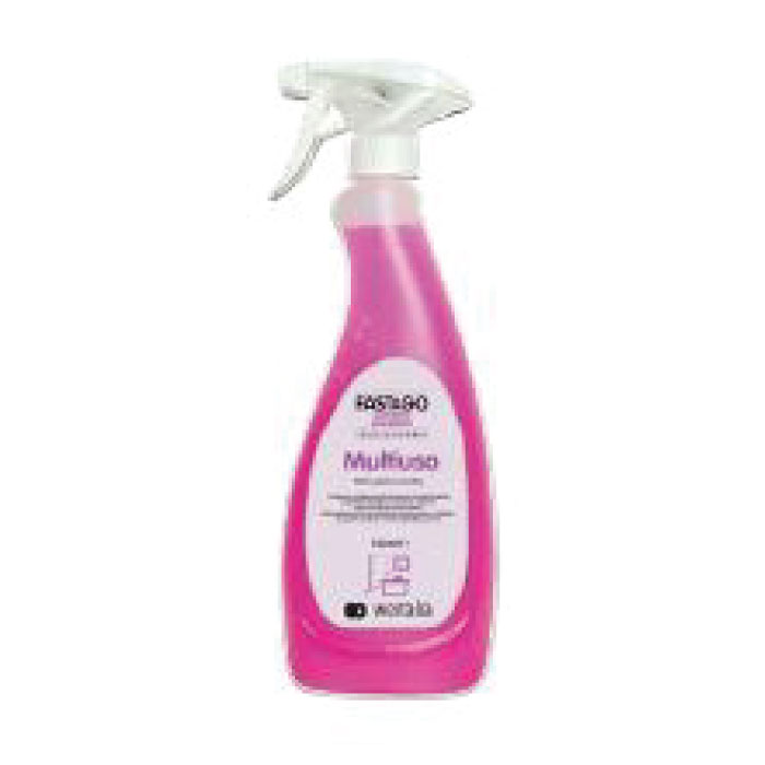 Detergente multiuso professionale per la pulizia rapida, splendente ed efficace di tutte le superfici, senza risciacquo e senza aloni. Dona agli ambienti una gradevole profumazione. Ph 9. Prodotto certificato CAM Criteri Ambientali Minimi. Imballo da 12 flaconi + 3 trigger.